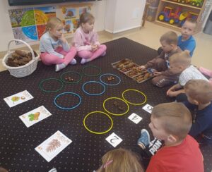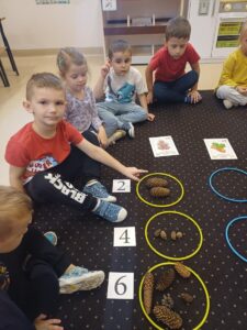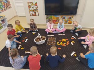 🍁 Okres jesienny wita dzieci światłem kolorowych liści 🍂 i dźwiękami szeleszczących gałęzi Zajęcia miały na celu pokazanie przedszkolakom jak bogata i ciekawa potrafi być ta pora roku. Poprzez zabawę, ruch i odkrywanie świata przyrody, dzieci rozwijały spostrzegawczość, koordynację i doskonaliły motorykę małą. Do zabaw wykorzystaliśmy dary jesieni,a na zakończenie wykonaliśmy pracę plastyczną jesienne drzewo wykonane z materiału przyrodniczego.