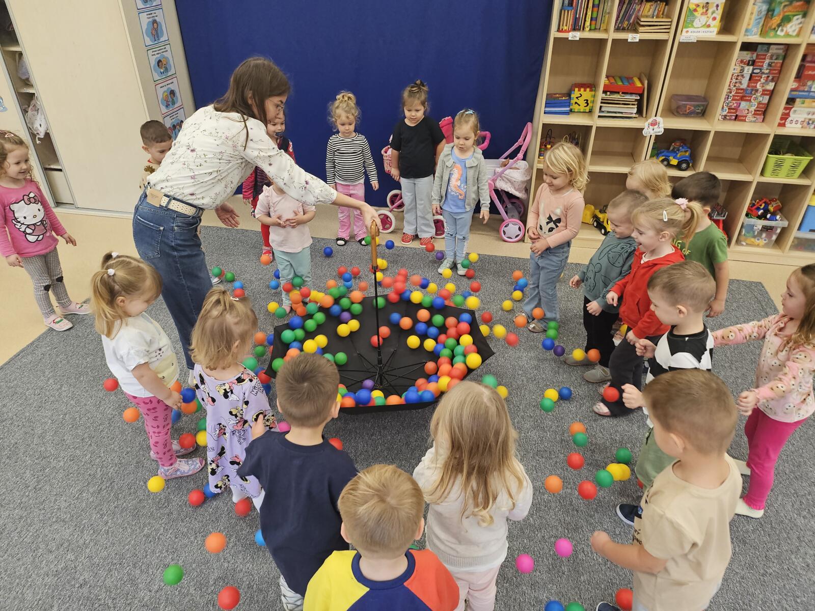 🌞🌞🌞 S Ł O N E C Z K A 🌞🌞🌞 Dziś 🌞 Słoneczka spędziły dzień pod znakiem parasolka ☂️ — to był przewodni temat dzisiejszych zajęć! 🌈✨ Dzieci wzięły udział w wesołej aktywności ruchowej z parasolką 💃🕺. Uważnie obserwowały, co pokazuje pani nauczycie