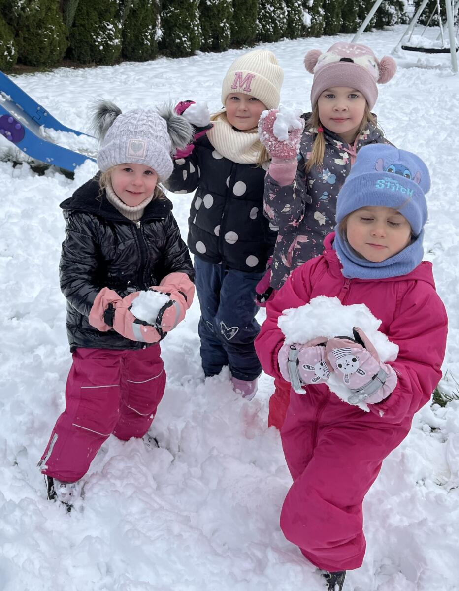 Panterki lepiły dziś bałwany, robiły aniołki na śniegu, turlały kule, zostawiały własne ślady na białym dywanie. Takie aktywności nie tylko dają mnóstwo frajdy, ale też rozwijają motorykę, kreatywność i uczą współpracy. Był to dzień pełen radości i uśmiechu.