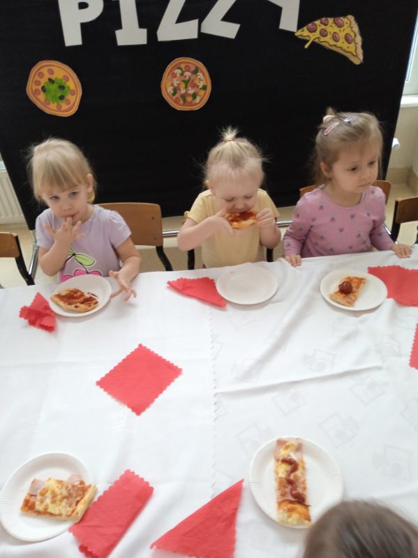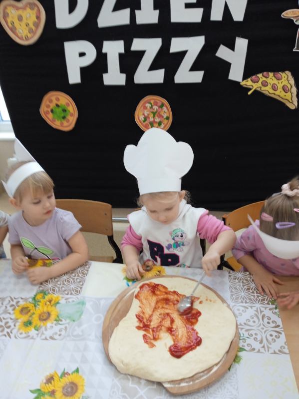 W grupie Biedronki obchodziliśmy wyjątkowy Dzień Pizzy, który połączył świetną zabawę z nauką i samodzielnym działaniem. Dzieci poznały historię pizzy, rozmawiały o ulubionych składnikach oraz zasadach zdrowego odżywiania. Następnie, podczas zajęć kulinarnych, każdy mały kucharz miał okazję przygotować pizzę.