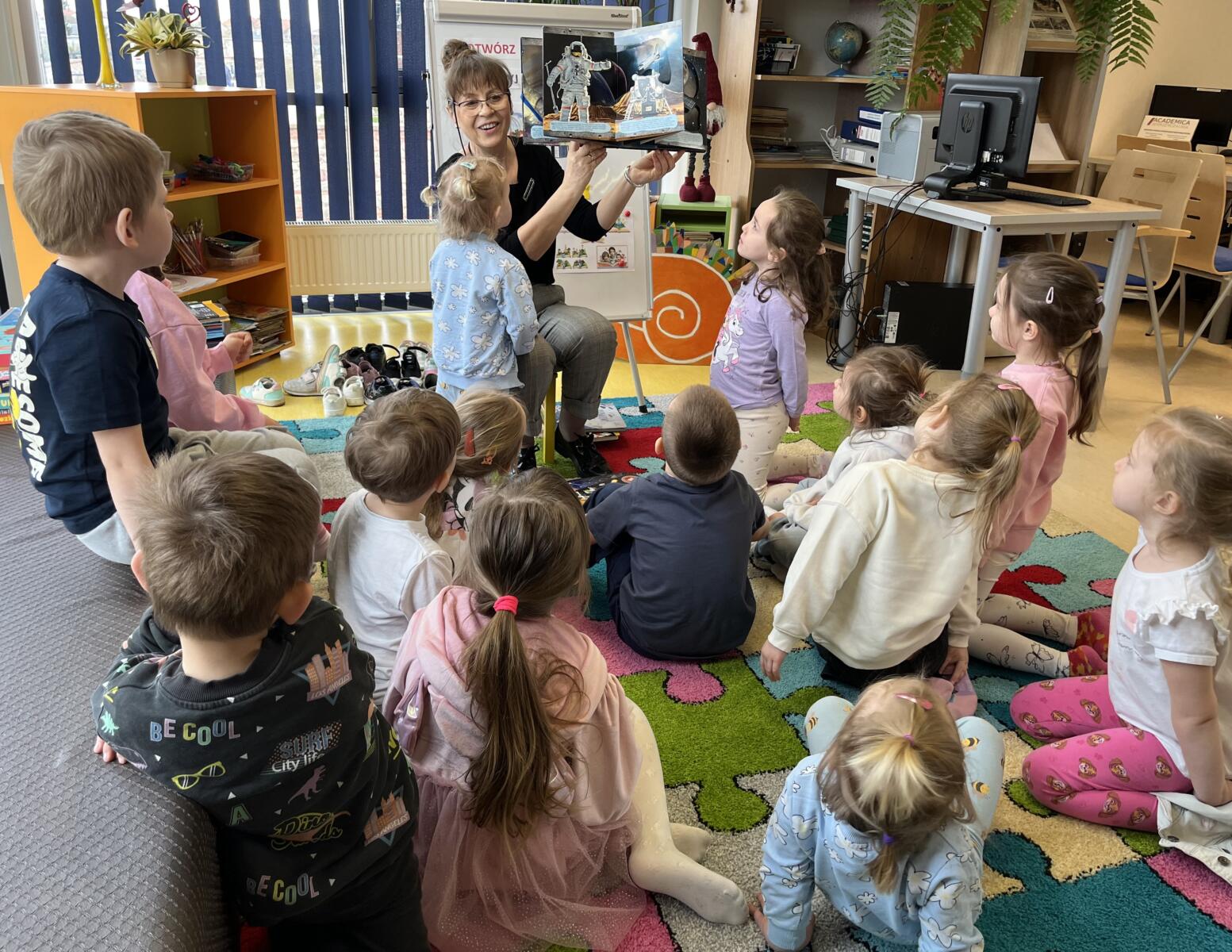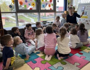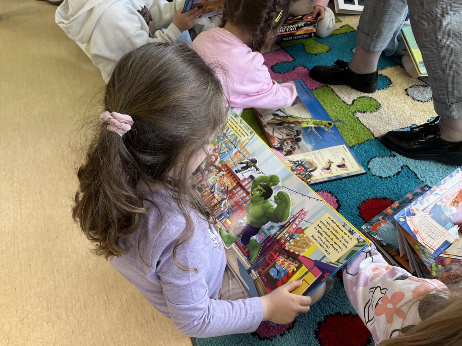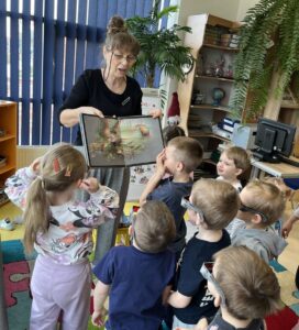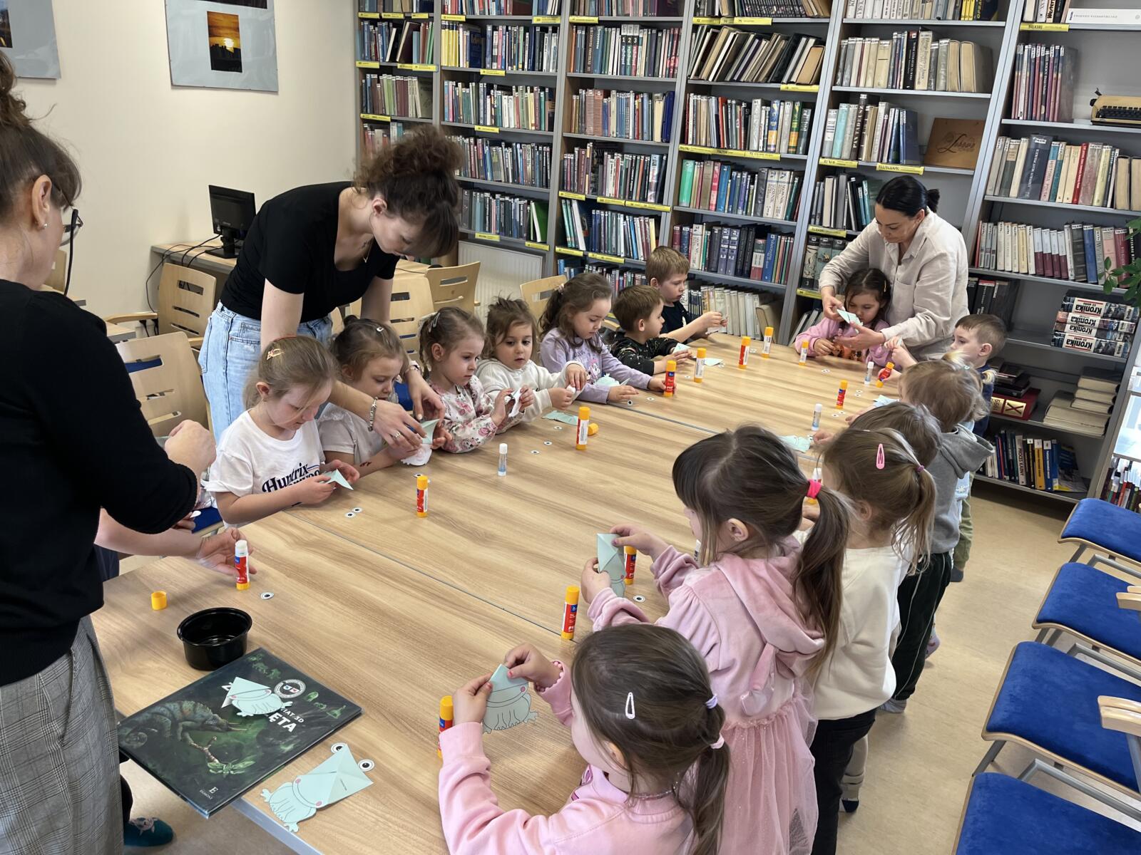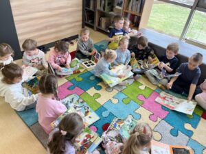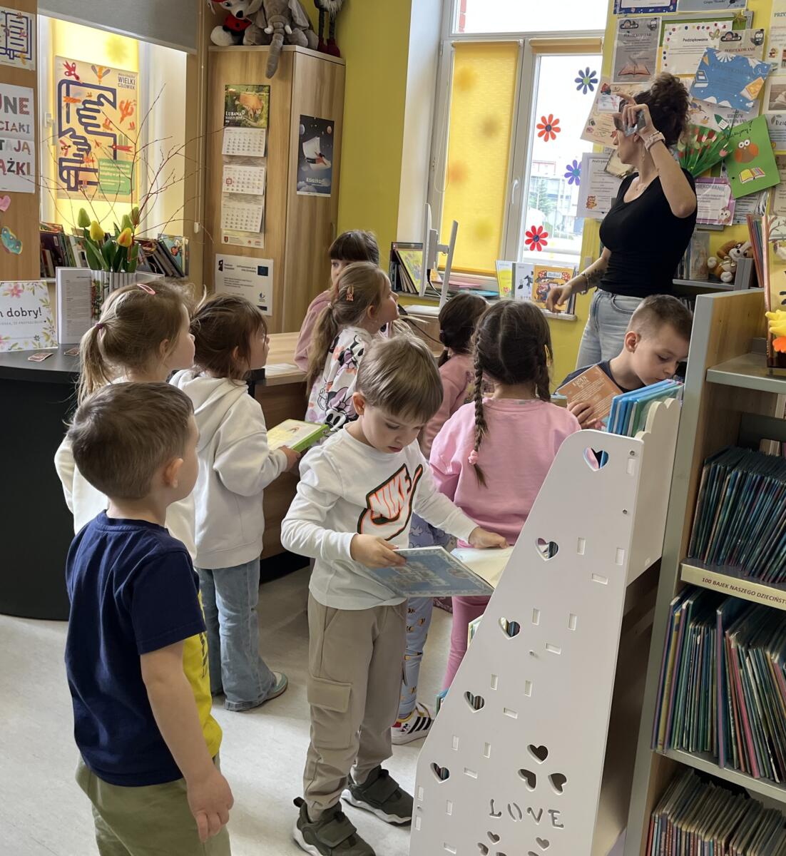 Panterki wybrały się na wycieczkę do biblioteki, gdzie miały okazję bliżej poznać to miejsce. Dzieci z zainteresowaniem oglądały książeczki o różnorodnej tematyce, dostosowane do ich wieku. Podczas spotkania dowiedziały się również, w jaki sposób można zapisać się do biblioteki i korzystać z jej zbiorów. Na zakończenie wizyty przedszkolaki wykonały “Zielone żabki”, czyli zakładki do książek.