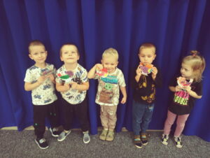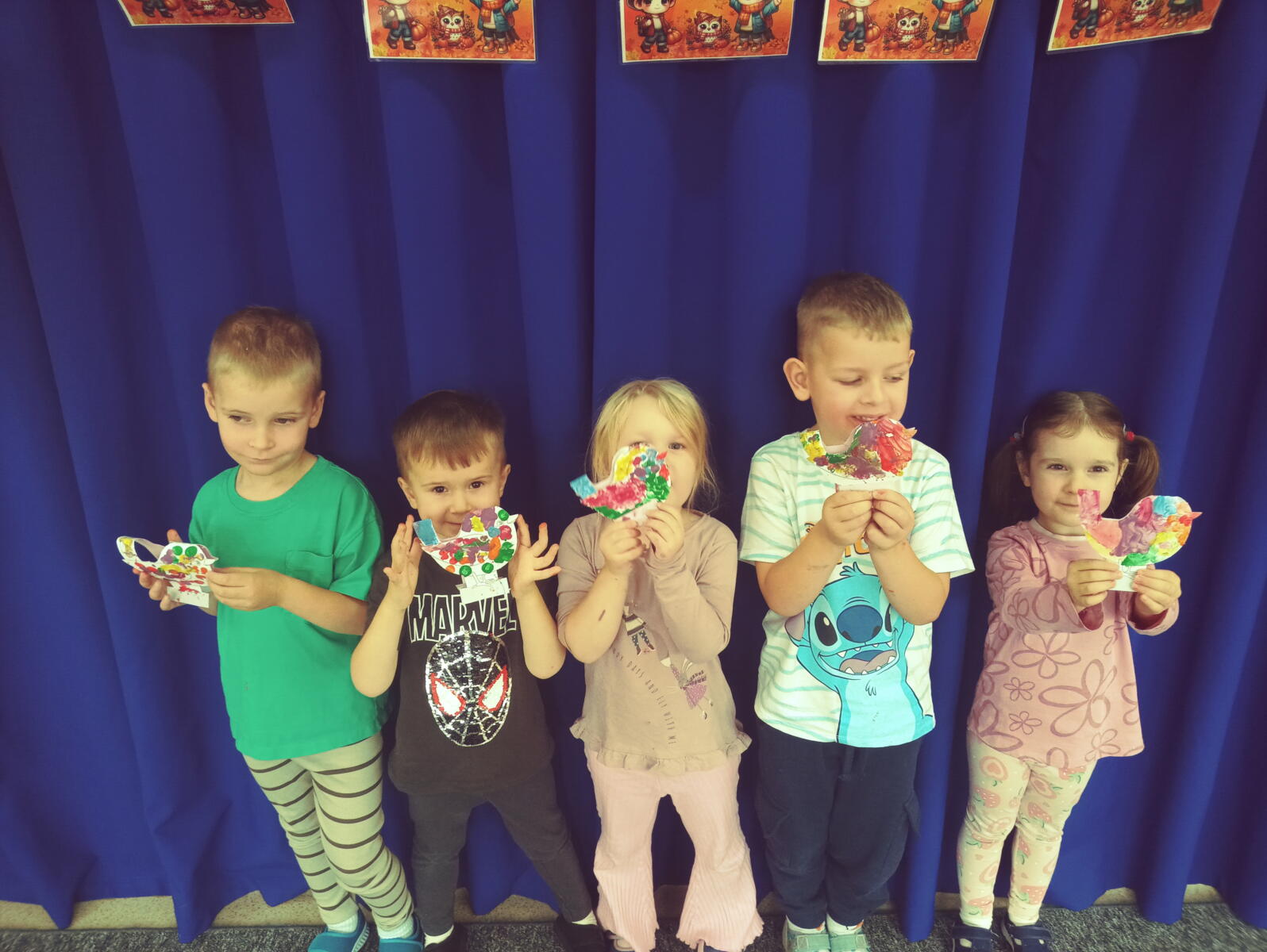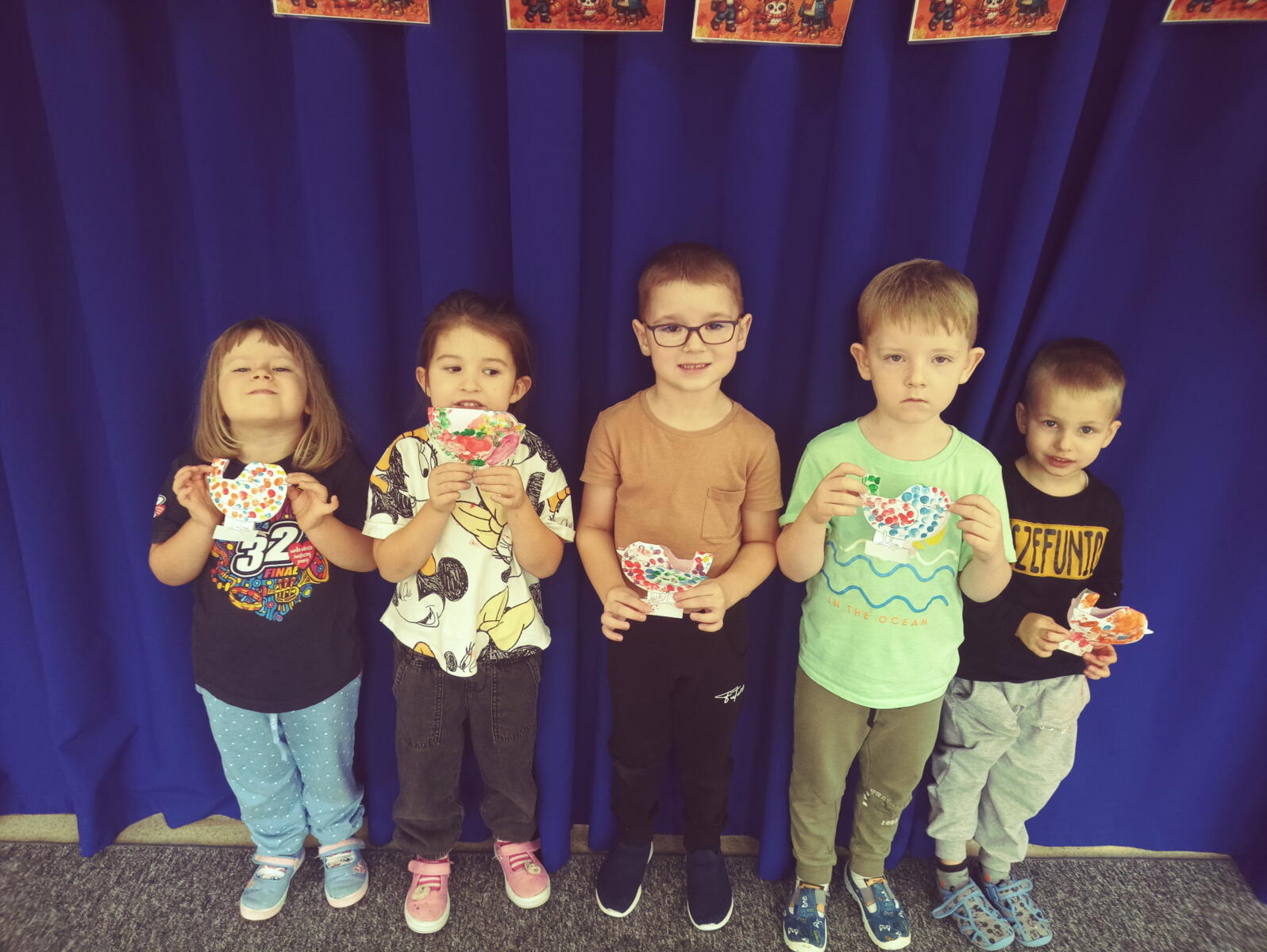 Dzieci ćwiczymy swoją kreatywność ,ale również motorykę małą-  malowanie palcami,wypychanie, składanie oraz klejenie❤
