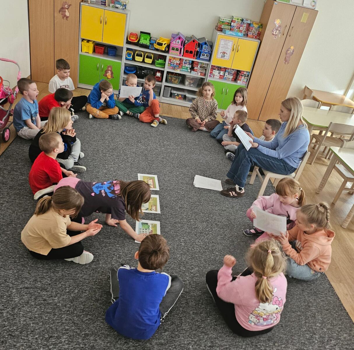 Grupa Niedźwiadki podczas zajęć o tematyce autyzmu z pedagogiem specjalnym