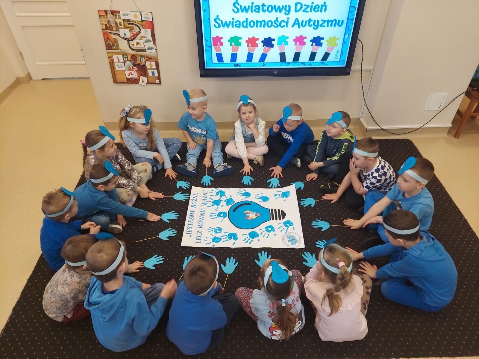 W Przedszkolu Miejskim w Lubawie obchodzono Światowy Dzień Świadomości Autyzmu. Wydarzenie miało na celu zwiększenie świadomości dzieci na temat autyzmu oraz kształtowanie postawy empatii i zrozumienia wobec innych. Tego dnia cała społeczność przedszkolna przyszła ubrana na niebiesko, symbolizując solidarność z osobami w spektrum autyzmu. Dodatkowo dzieci i nauczyciele założyli opaski z żarówką, będącą znakiem wiedzy i zrozumienia. We wszystkich grupach odbyły się zajęcia dydaktyczne przybliżające tę tematykę w sposób dostosowany do wieku przedszkolaków. W trakcie zajęć wykorzystano prezentacje multimedialne, filmy oraz różnorodne materiały edukacyjne. Dzięki nim dzieci mogły lepiej zrozumieć, czym jest autyzm i jak funkcjonują osoby nim dotknięte. Dużym zainteresowaniem cieszyła się przygotowana specjalnie na tę okazję ścieżka sensoryczna. Dzieci miały możliwość doświadczyć różnych bodźców, takich jak światło, dźwięk oraz rozmaite faktury i struktury. Ścieżka ta pokazywała, w jaki sposób osoby z autyzmem mogą odbierać otaczający świat. Było to dla przedszkolaków ciekawe i rozwijające doświadczenie. Grupy przygotowały także plakaty będące wyrazem solidarności z osobami z autyzmem.
