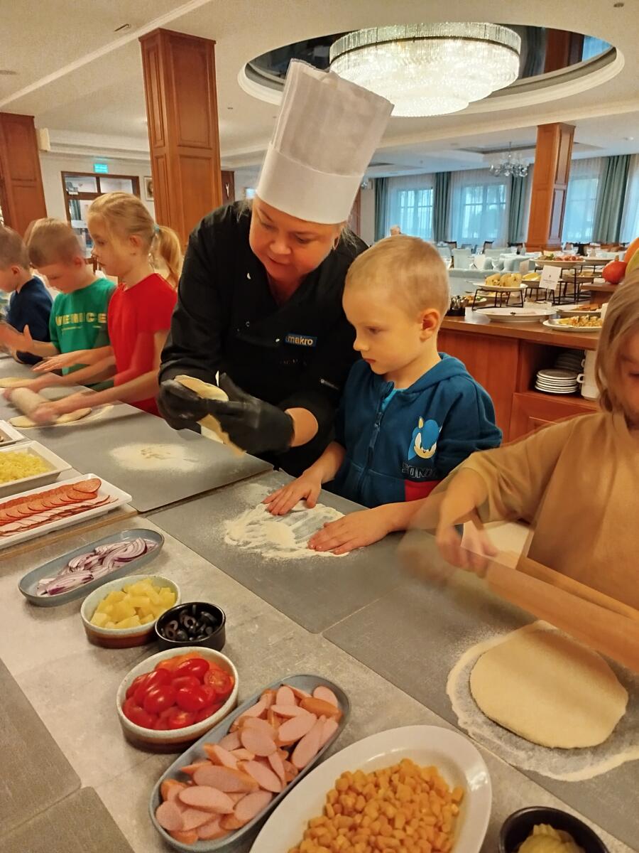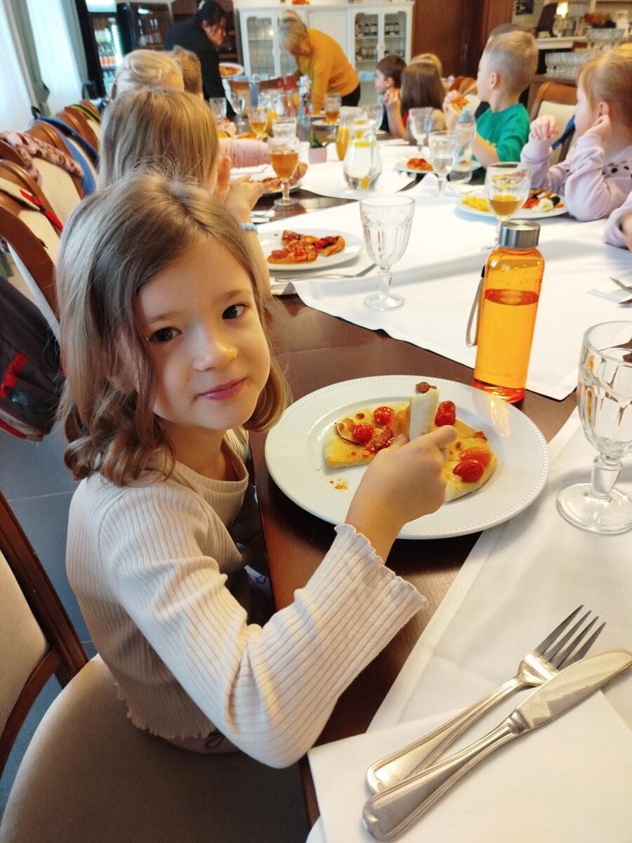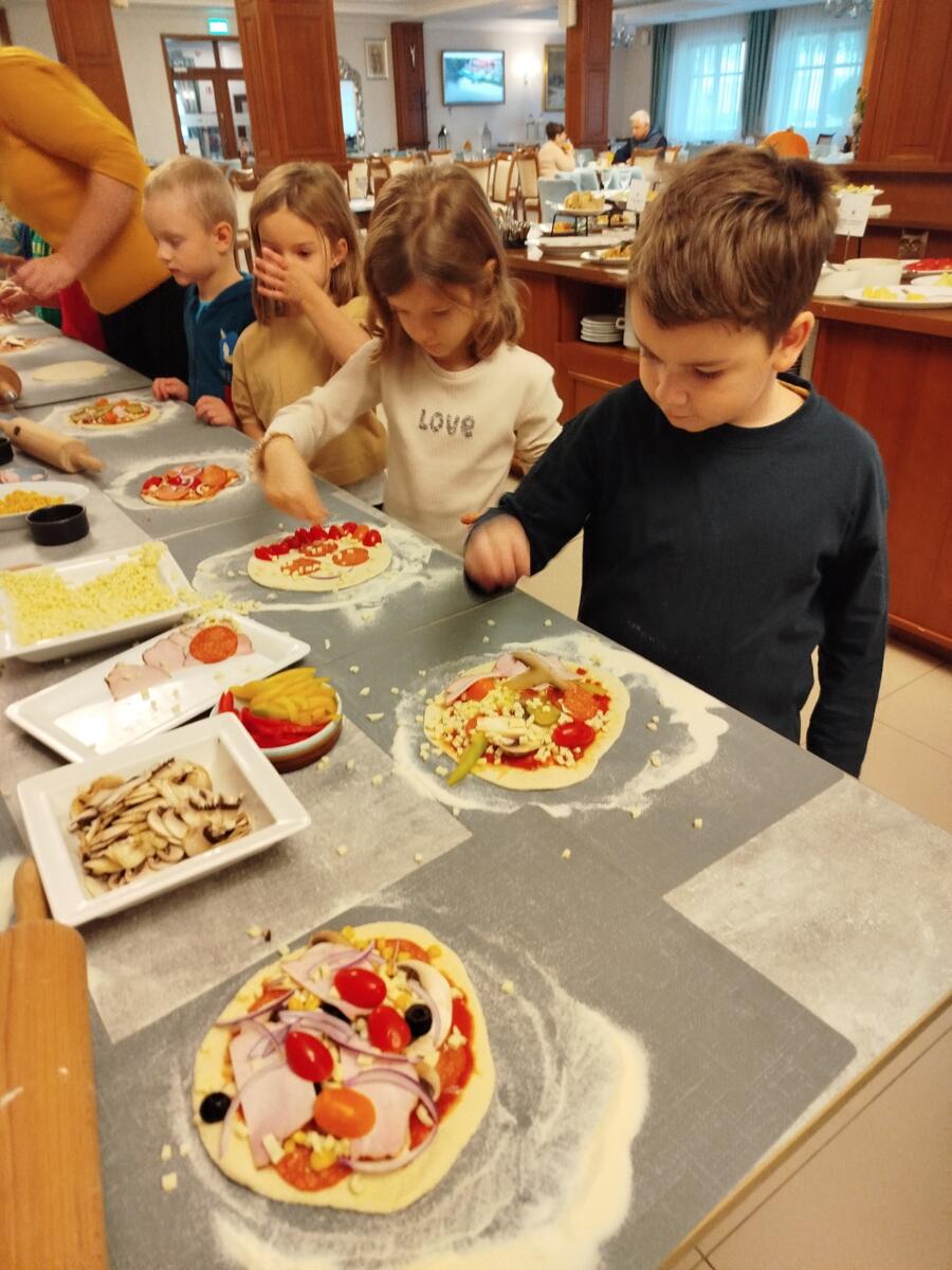 Dzieci uczestniczyły również w warsztatach kulinarnych, podczas których samodzielnie przygotowywały i piekły pizzę pod okiem pałacowej szefowej kuchni. Po wspólnym posiłku przyszedł czas na relaks w pięknym parku i zabawę na placu zabaw. To był dzień pełen wrażeń, radości i nowych doświadczeń!