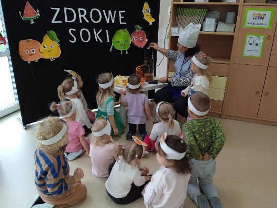 W tym tygodniu w grupie Biedronki odbyły się wyjątkowo smaczne i zdrowe zajęcia. Dzieci miały okazję zobaczyć jak przygotowuje się świeże soki owocowe oraz wziąć udział w kolorowej degustacji owoców.