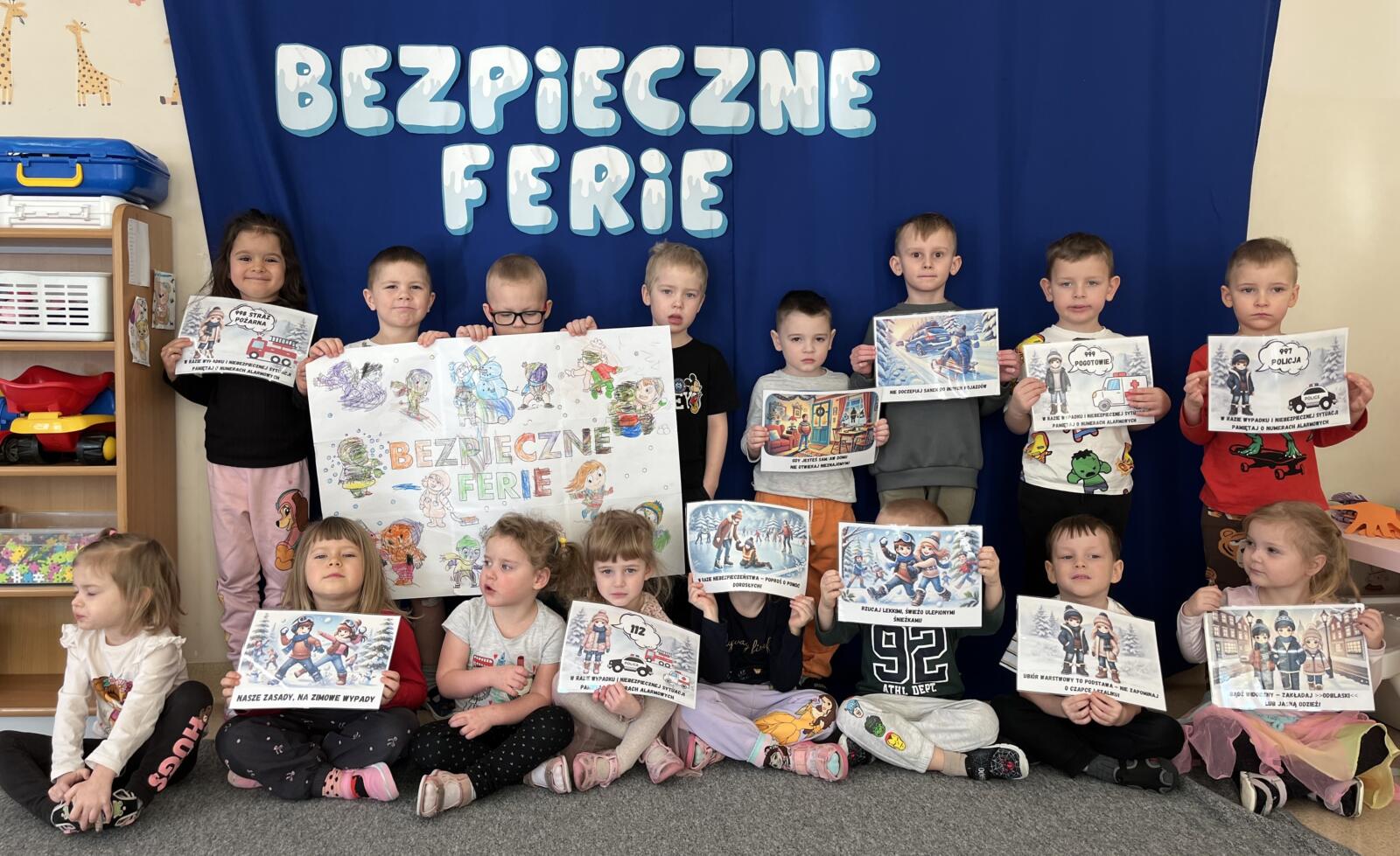 W naszym przedszkolu odbyły się zajęcia poświęcone bezpiecznym zachowaniom zimą. Podczas pogadanki dzieci dowiedziały się, jak bezpiecznie spędzać ferie oraz jak unikać zimowych zagrożeń. Przedszkolaki oglądały obrazki przedstawiające prawidłowe i niebezpieczne zachowania, malowały