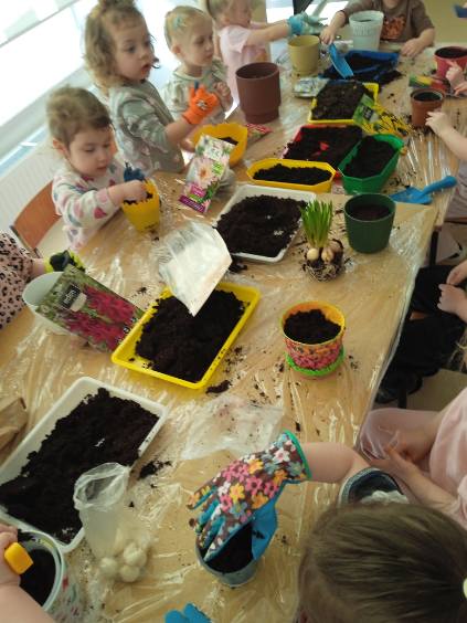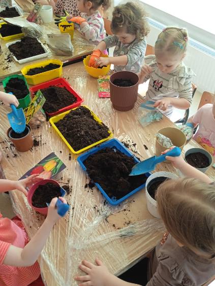 Było to ciekawe i radosne zajęcie, które sprawiło dzieciom wiele satysfakcji. Teraz maluchy będą obserwować, jak ich rośliny rosną każdego dnia. To była wspaniała lekcja przyrody i odpowiedzialności.