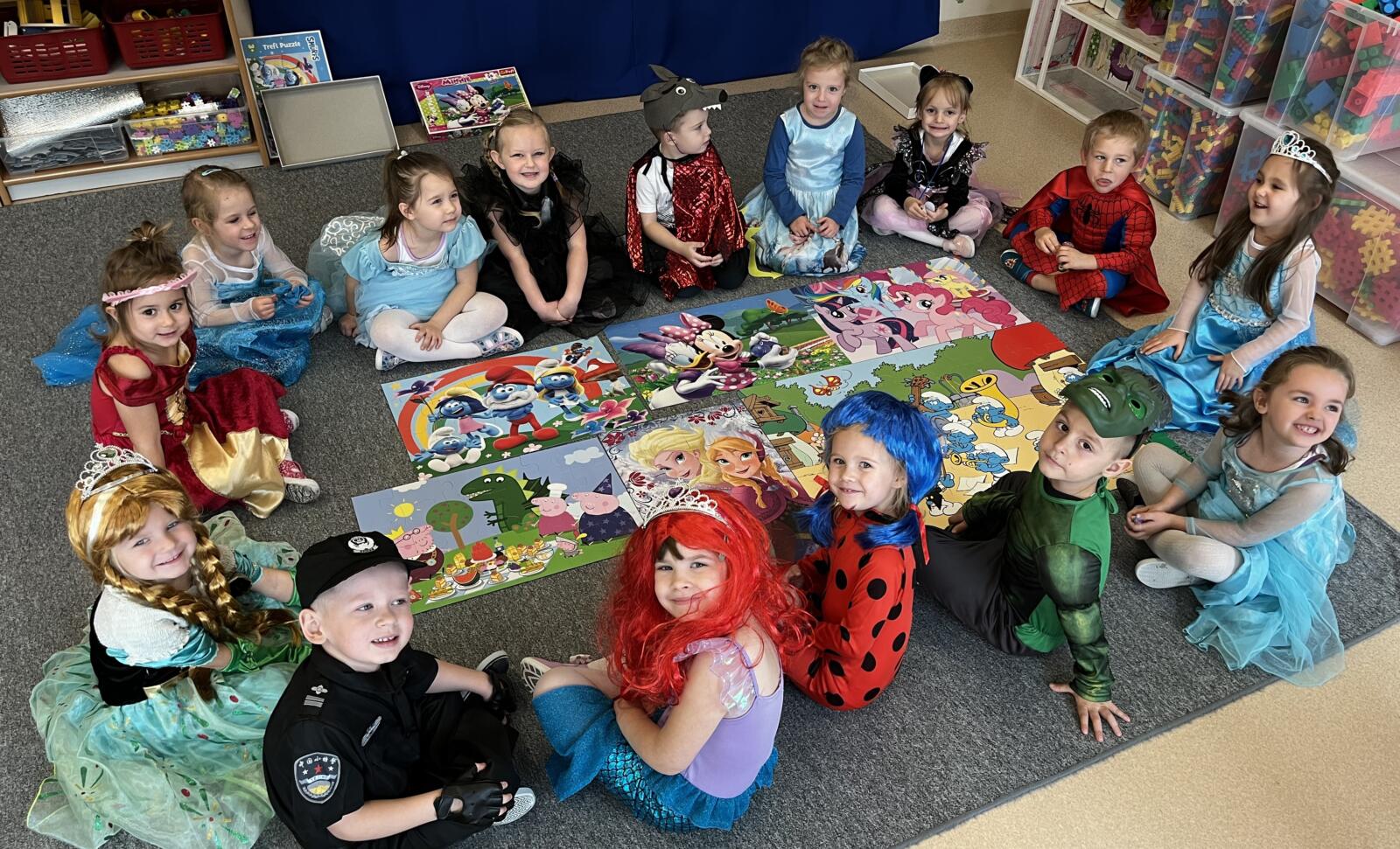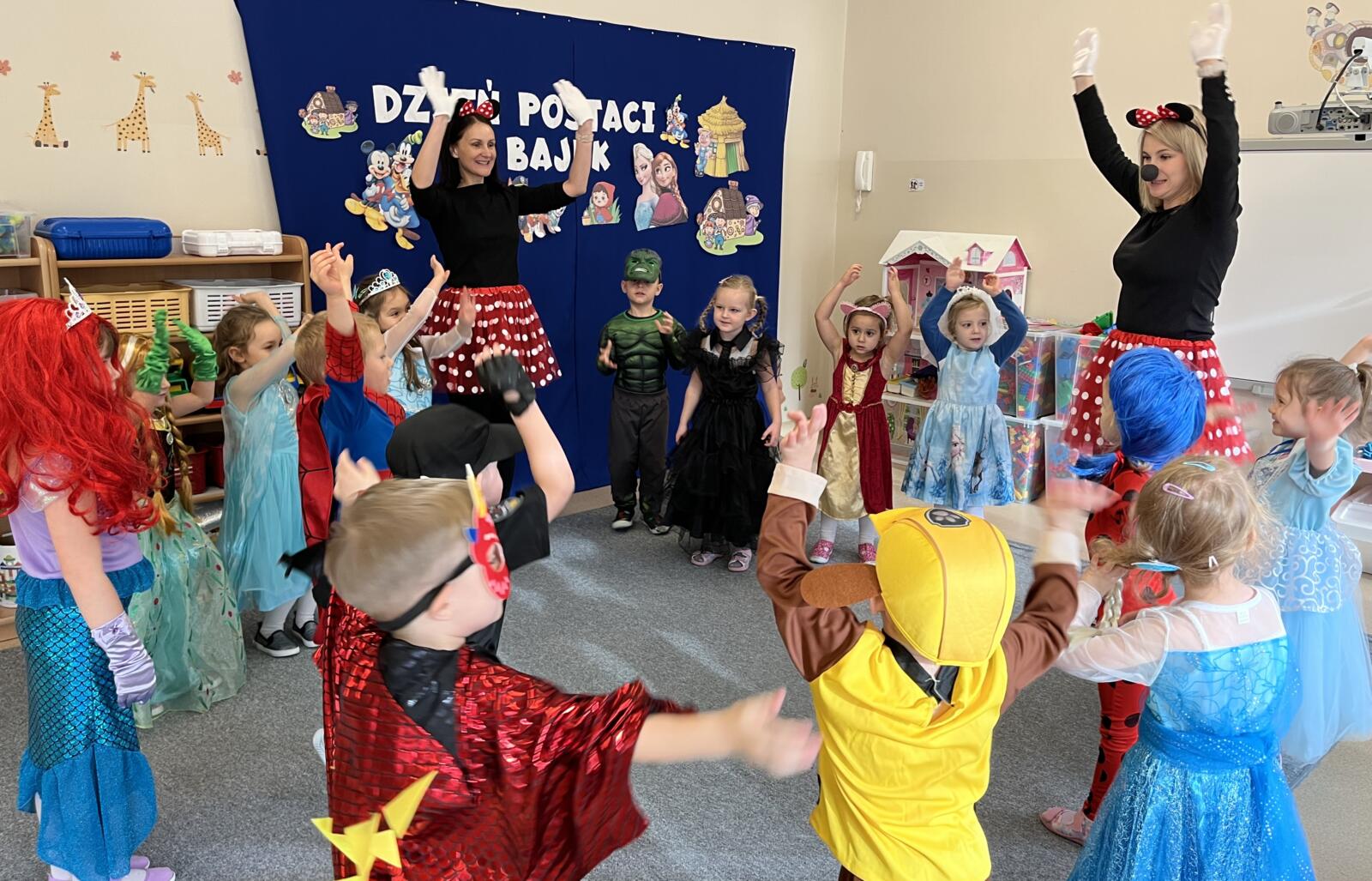 Nasze Panterki przyszły dziś do przedszkola przebrane za swoje ulubione postacie z bajek. Od samego rana opowiadały o swoich strojach i naśladowały ulubionych bohaterów. Nie zabrakło wspólnych tańców i wesołej zabawy przy muzyce, a także odwiedzin wyjątkowych gości — Myszek Miki! Dzieci układały bajkowe puzzle, dopasowywały rekwizyty do znanych książek z bajkami. To był naprawdę magiczny dzień!