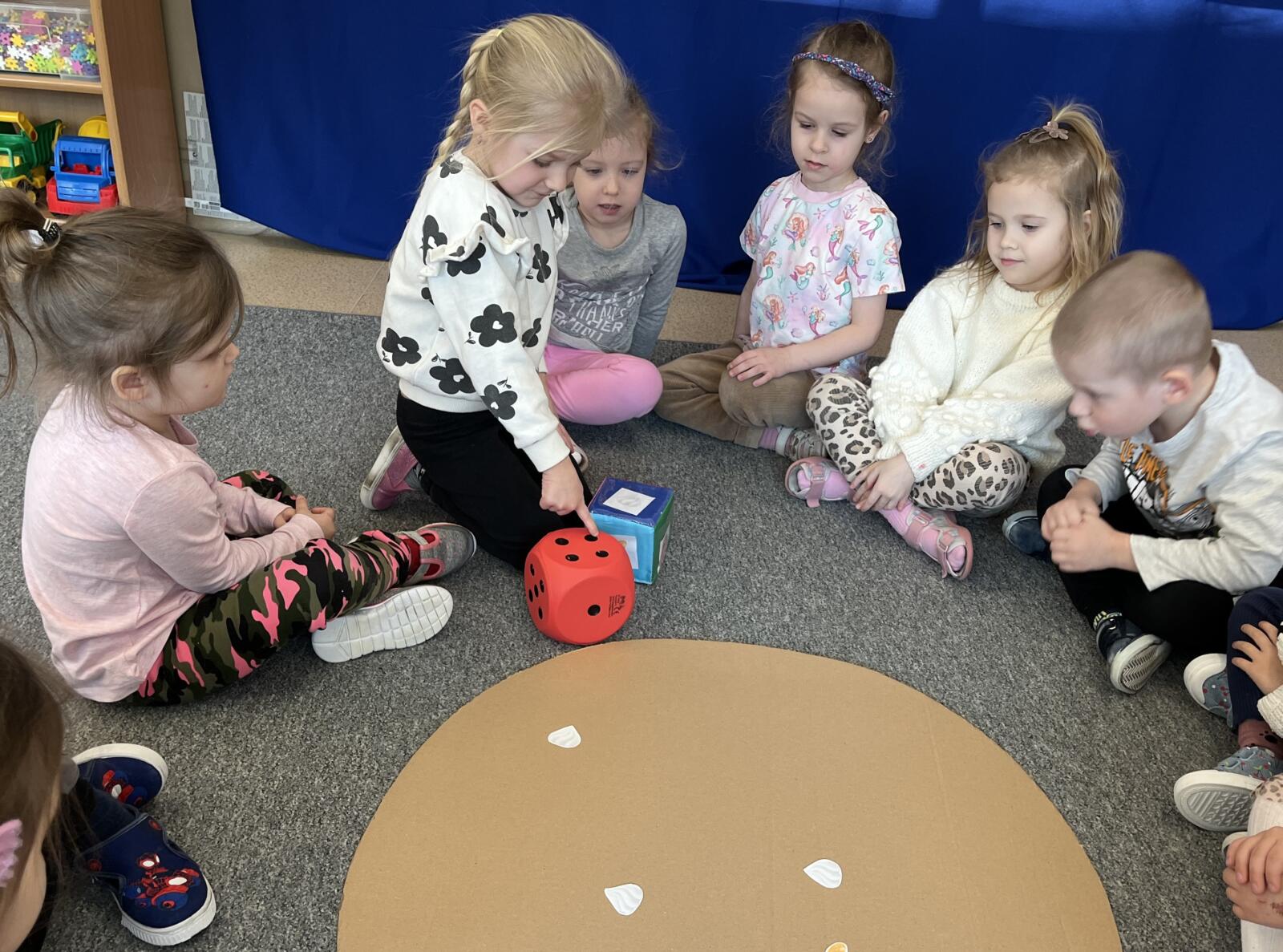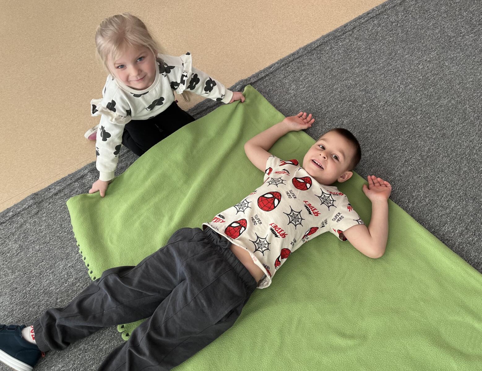 Dzieci przeliczały naleśnikowe dodatki, zawijały się w koc „jak naleśnik”, co stymulowało czucie głębokie, świadomość własnego ciała oraz sprzyjało wyciszeniu i poczuciu bezpieczeństwa. Nie zabrakło też degustacji pysznych naleśników przygotowanych przez jedną z mam. Zabawy dostarczyły dzieciom wielu bodźców sensorycznych, radości i pozytywnych doświadczeń.