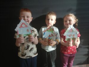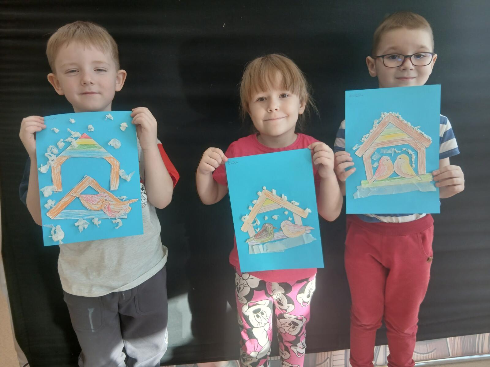 W trakcie pracy dzieci 膰wiczy艂y motoryk臋 ma艂膮- kolowanie, przyklejanie, wypychanie