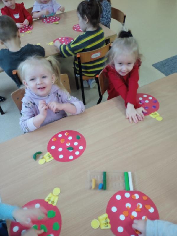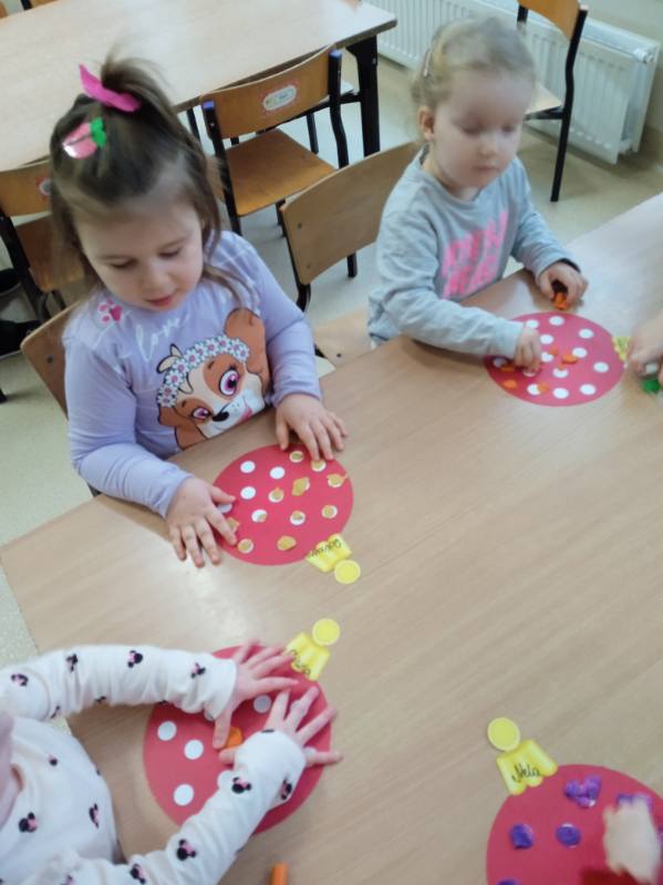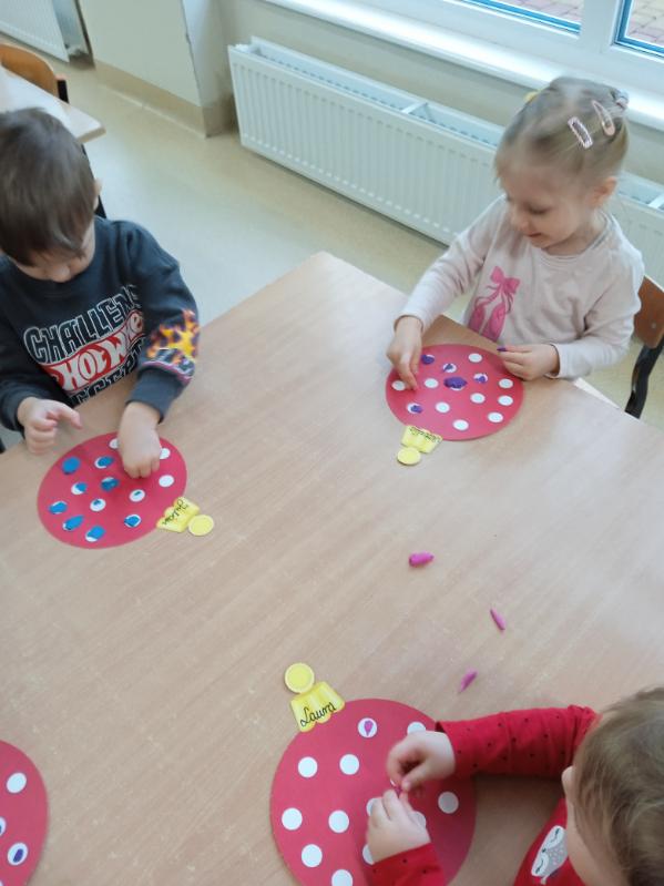 Grupa „Biedronki” dekoruje bombki plasteliną